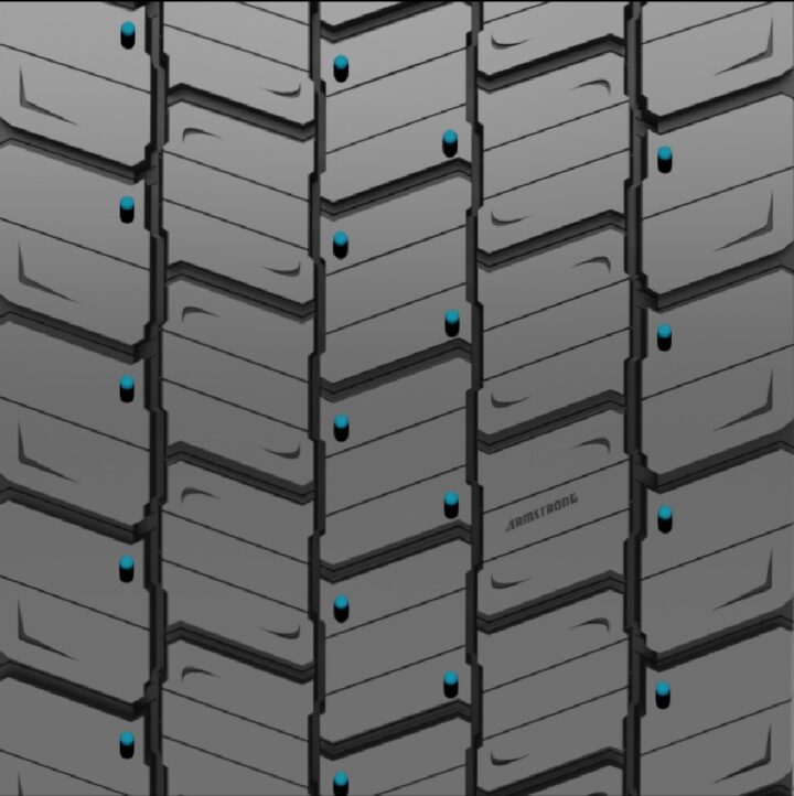 A drive pattern for regional applications with a unique directional tread design to provide better traction, compact and rigid tread blocks to reduce noise, a deeper tread design for enhanced mileage and lower operating costs, and 3D sipes and deep holes for quicker water evacuation.