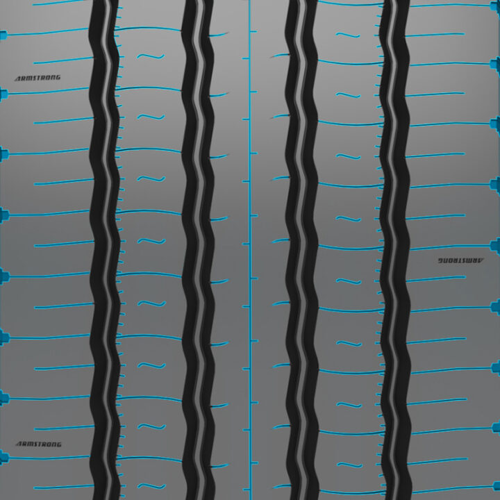 Next generation steer pattern designed for long-haul and regional applications features strong shoulder ribs and a five-rib tread for exceptional steering, zigzag grooves for quicker water evacuation, specially designed sipes to resist irregular wear, and an innovative tread compound that increases mileage while reducing fuel consumption.