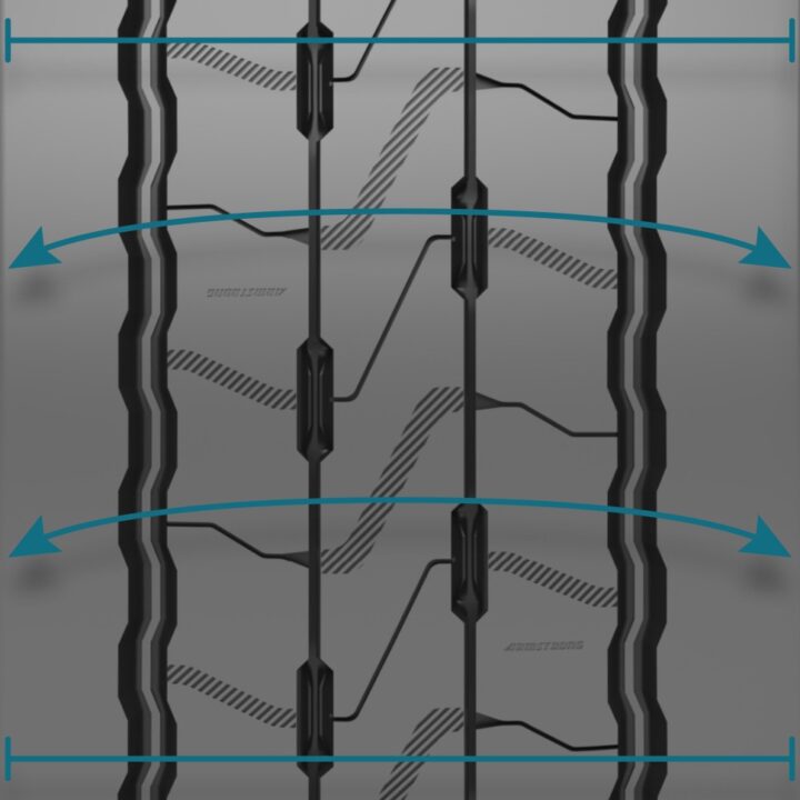 with hidden longitudinal grooves and sipes in three center ribs provides better traction throughout the tyre’s lifespan.