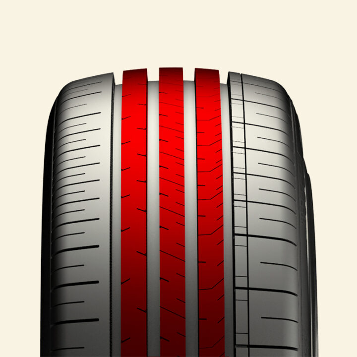 A variety of sipes distributed on the inner ribs creates extra gripping surfaces for enhanced safety and ride comfort.
